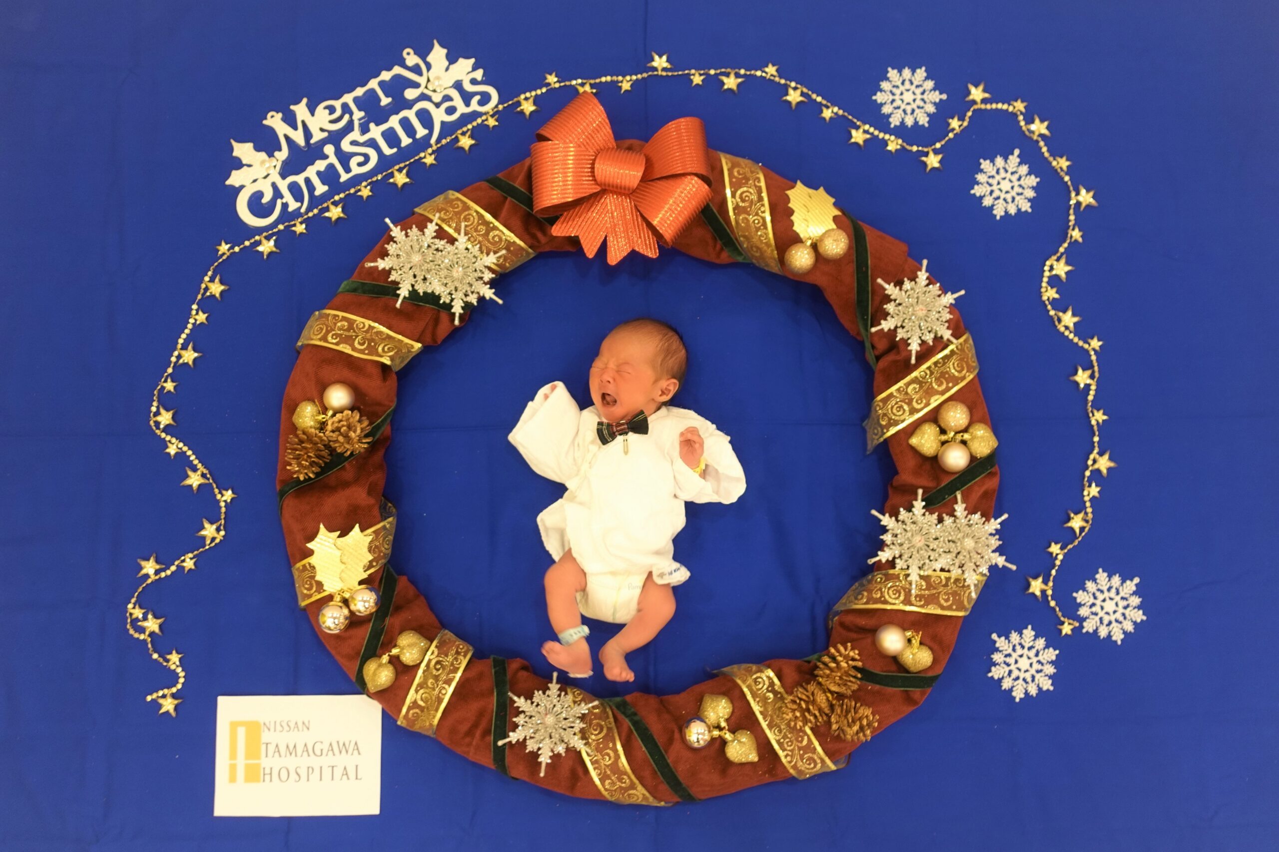 12月になりました。産科棟ではクリスマスリースをテーマにしたおひるねアートの撮影を始めました。