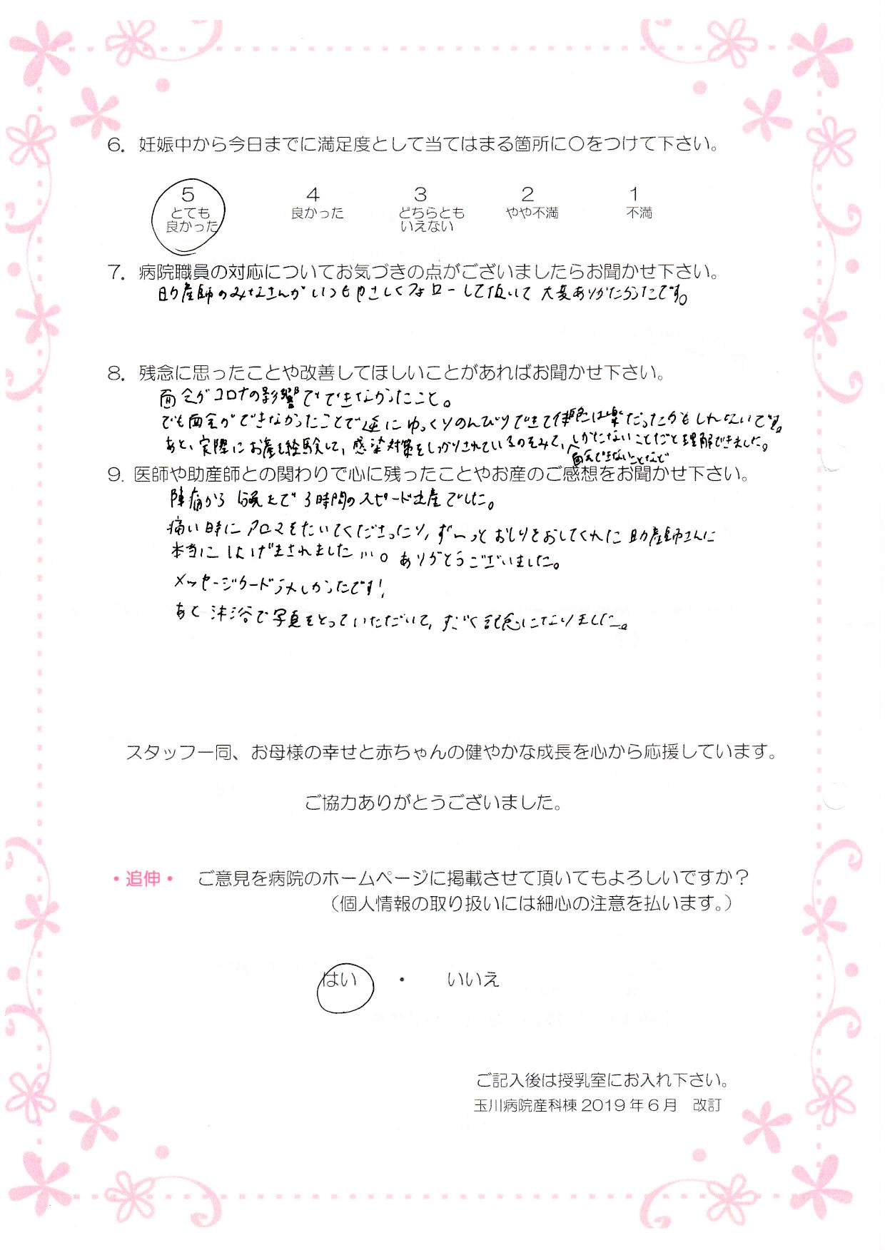 【7】助産師のみなさんがいつもやさしくフォローして頂いて大変ありがたかったです。