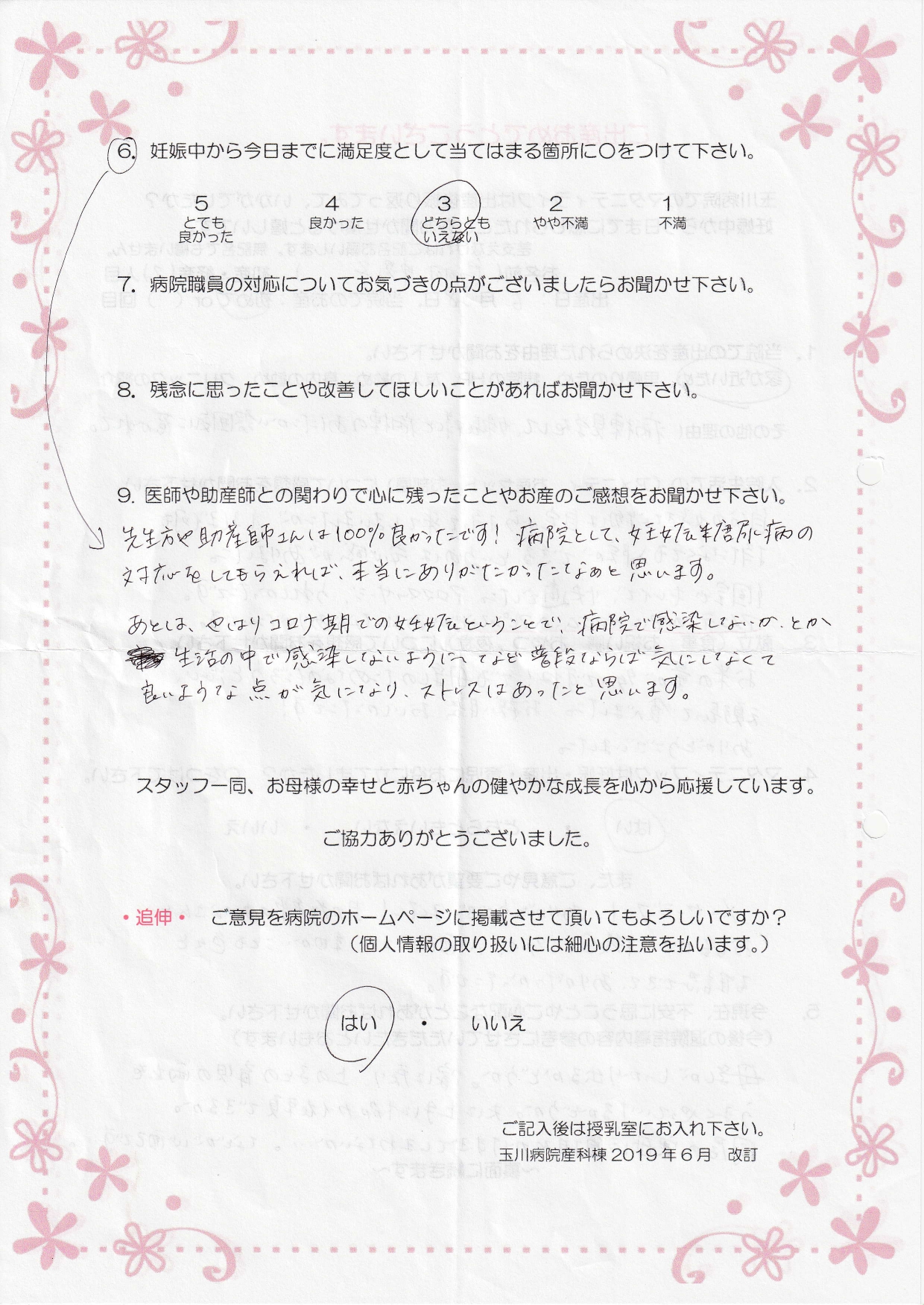 【4】はい メッセージフォト、ありがとうございました!助産師のみなさんとお話しできる機会が多く、心配なこと、細かいことも色々と確認できて、ありがたかったです。