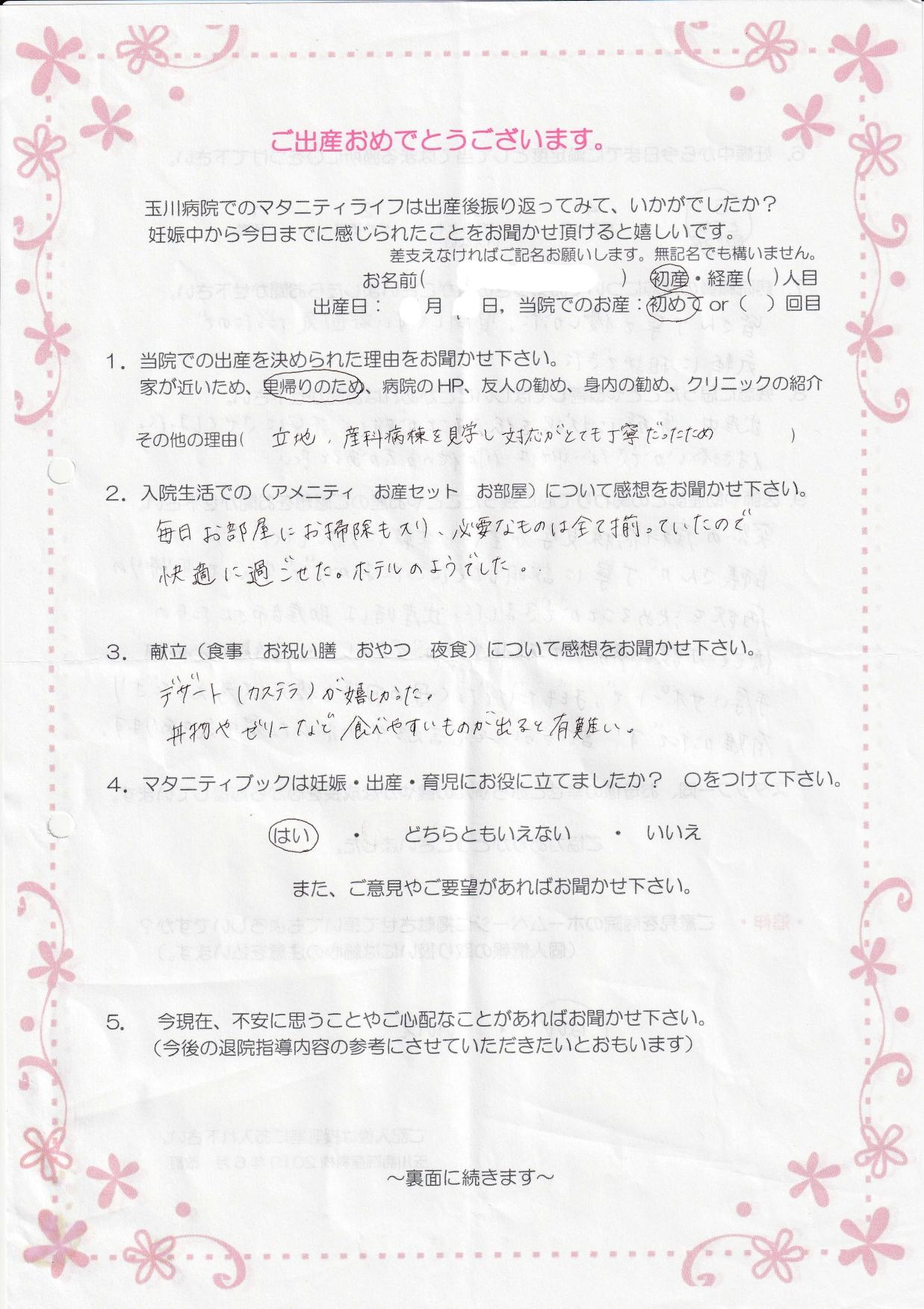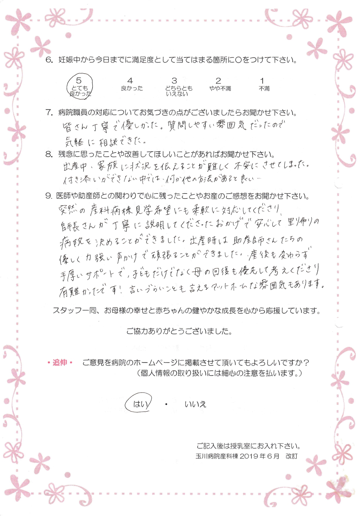 【1】里帰りのため、立地、産科病棟を見学し対応がとても丁寧だったため