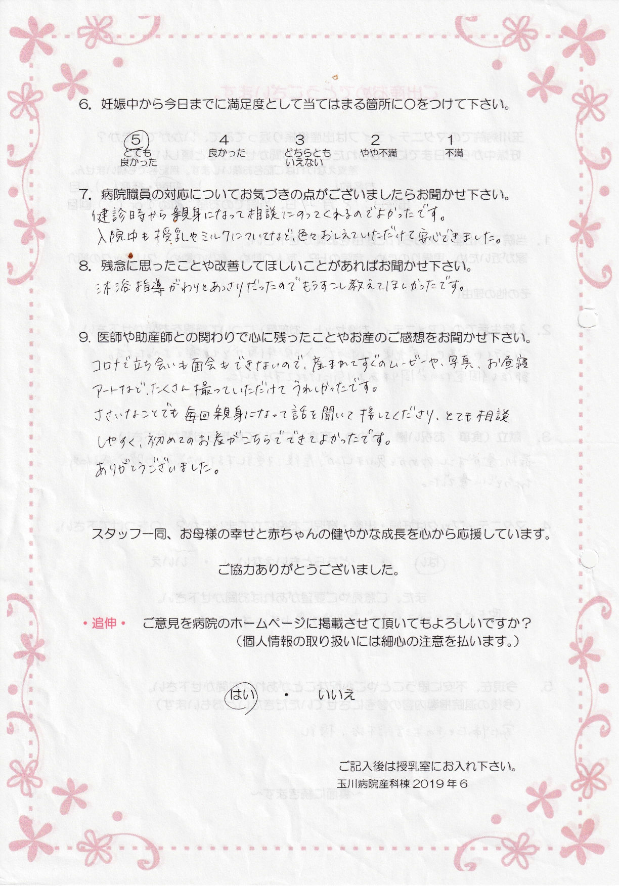 【9】コロナで立ち会いも面会もできないので、産まれてすぐのムービーや、写真、お昼寝アートなど、たくさん撮っていただけてうれしかったです。ささいなことでも毎回親身になって話を聞いて接してくださり、とても相談しやすく、初めてのお産がこちらでできてよかったです。ありがとうございました。