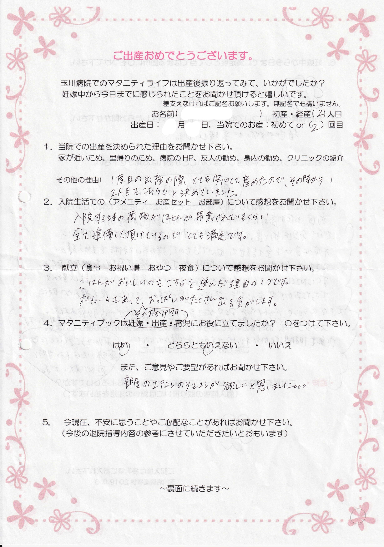 【1】1度目の出産の際とても安心して産めたので、その時から2人目もこちらでと決めていました。