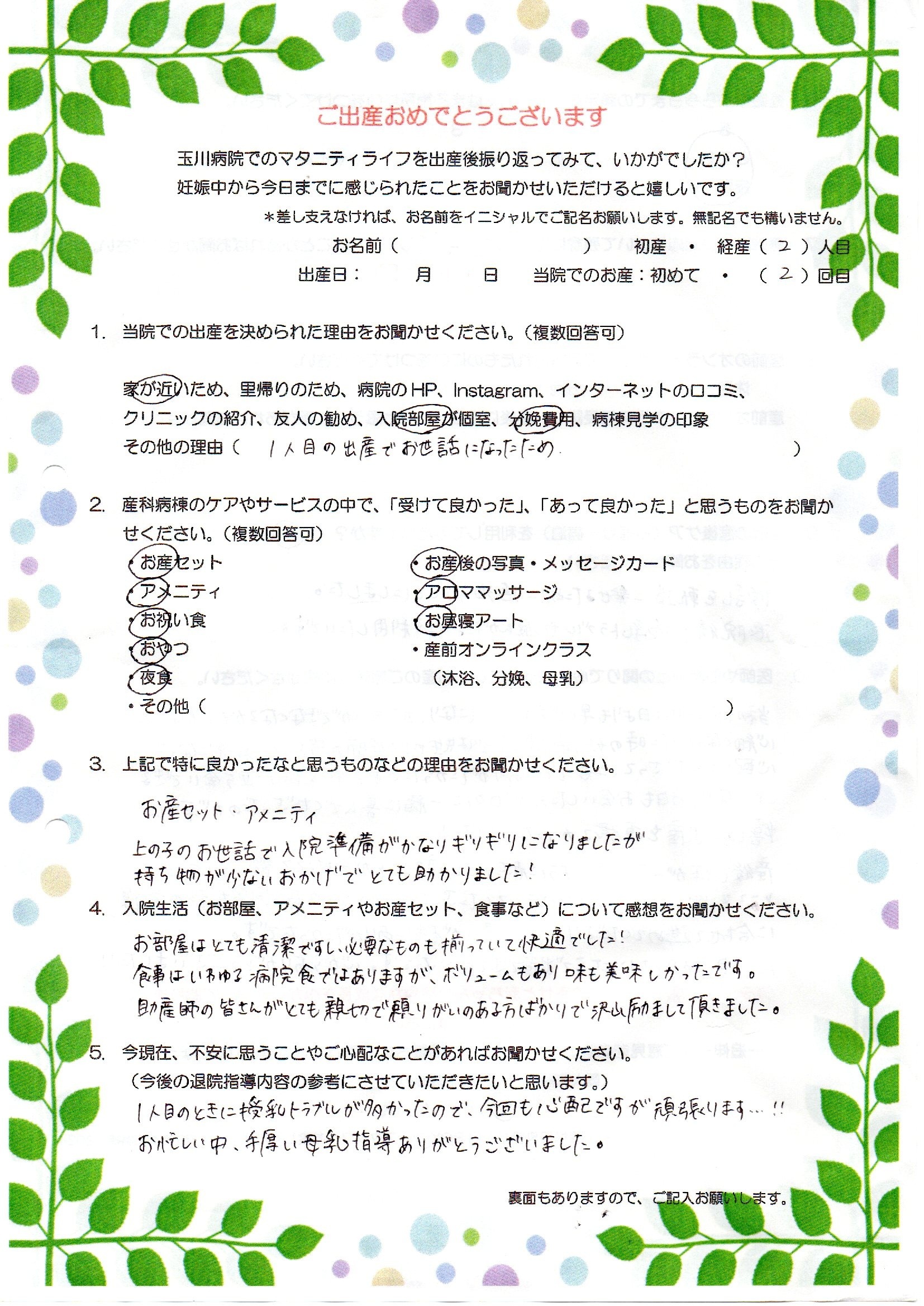 上の子のお世話で入院準備がかなりギリギリになりましたが持ち物が少ないおかげでとても助かりました!