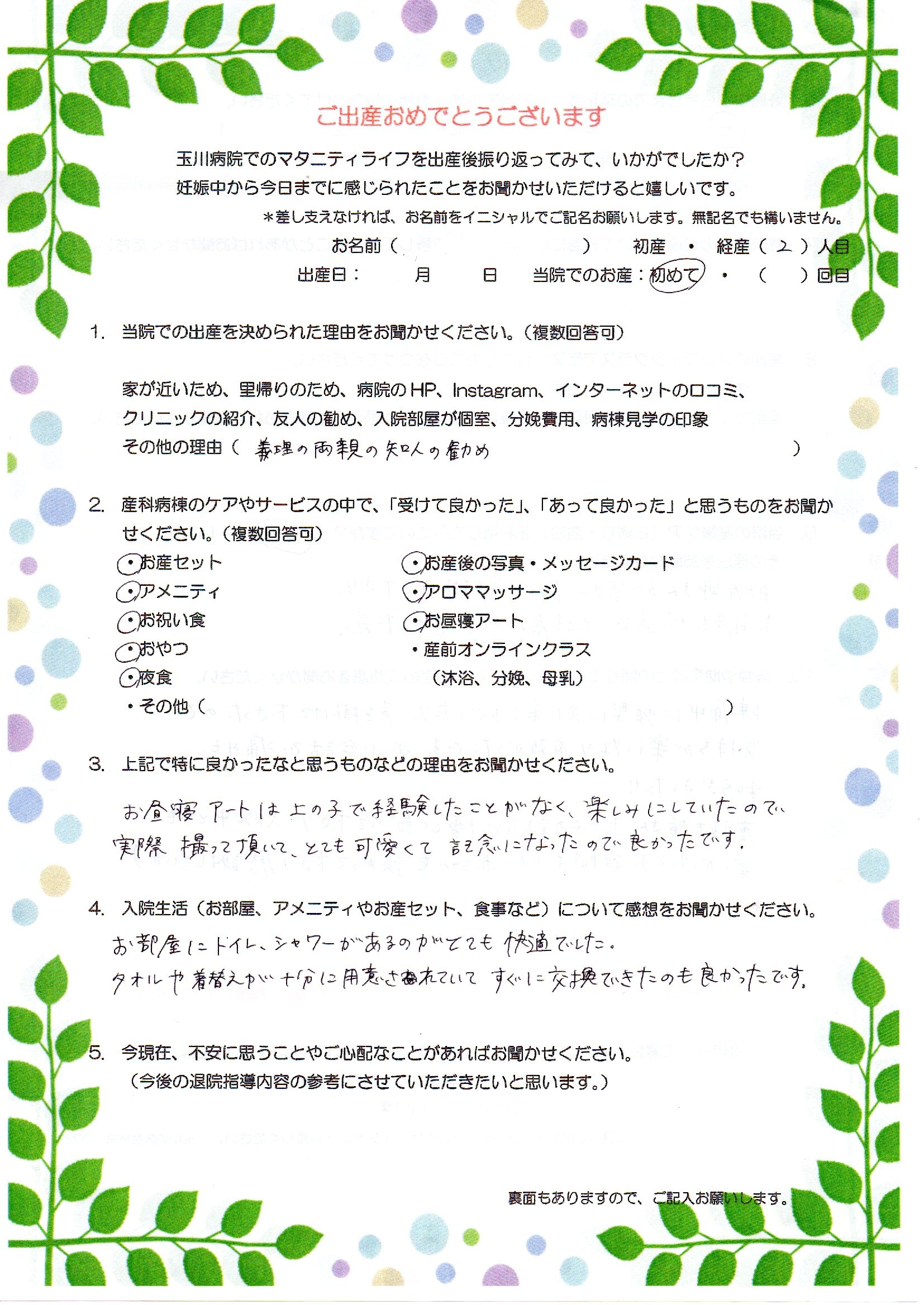 お昼寝アートは上の子で経験したことがなく、楽しみにしていたので実際撮って頂いて、とても可愛くて記念になったので良かったです。