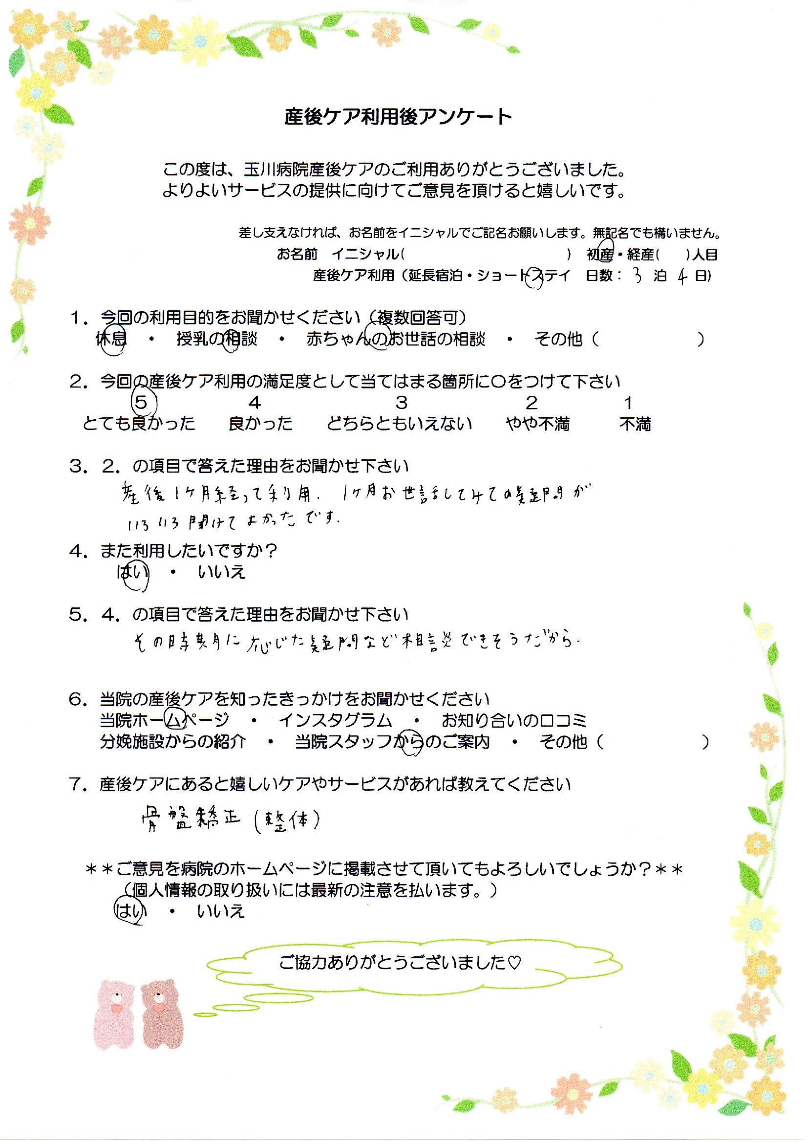【3】産後1ヶ月経って利用、1ヶ月お世話してみての疑問がいろいろ聞けてよかったです。