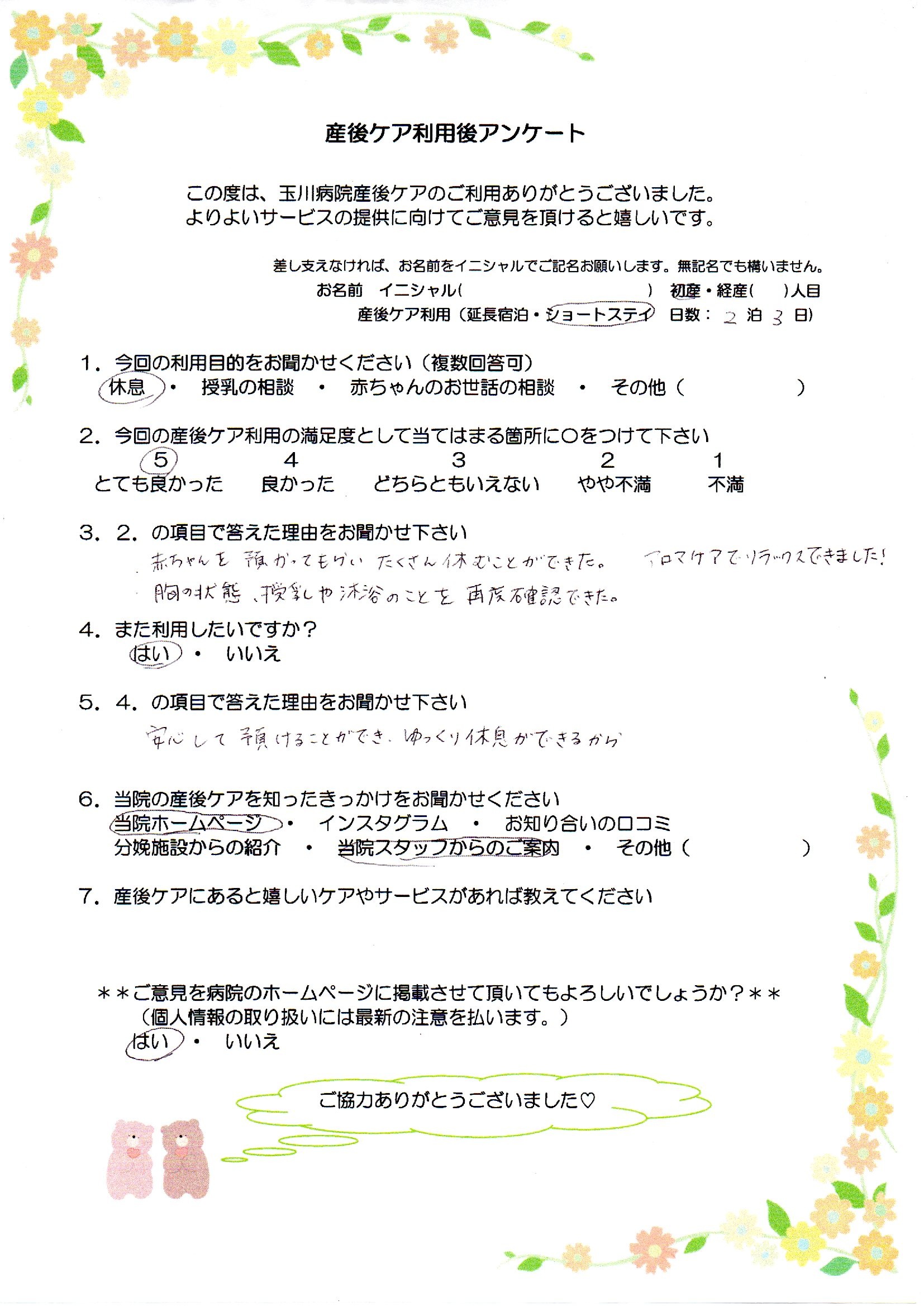 ・赤ちゃんを預かってもらいたくさん休むことができた。アロマケアでリラックスできました!