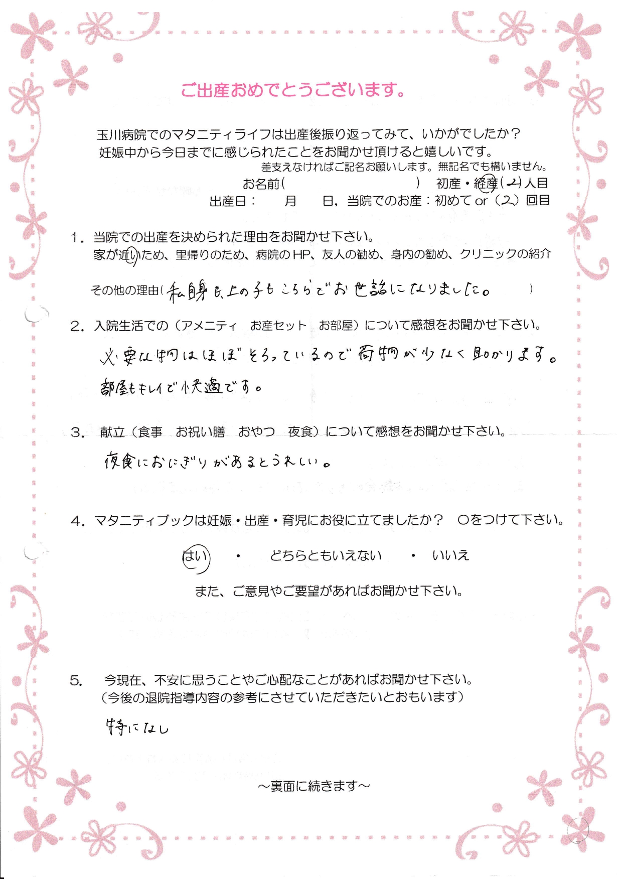 【1】家が近いため、私自身も、上の子もこちらでお世話になりました。