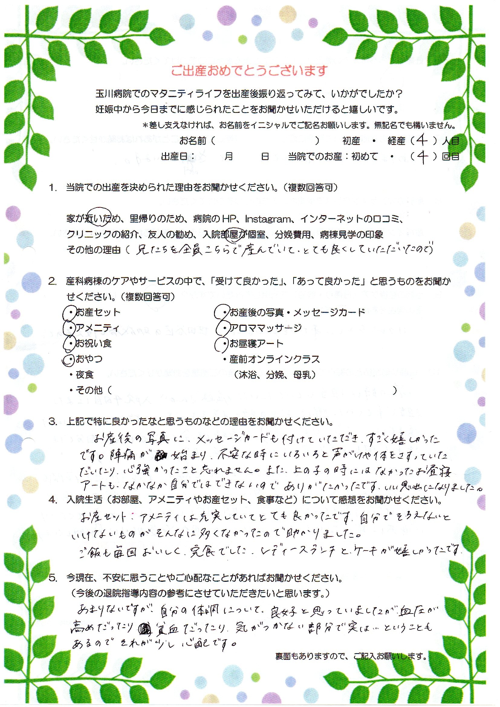 家が近いため、入院部屋が個室、その他(兄たちを全員こちらで産んでいて、とても良くしていただいたので)