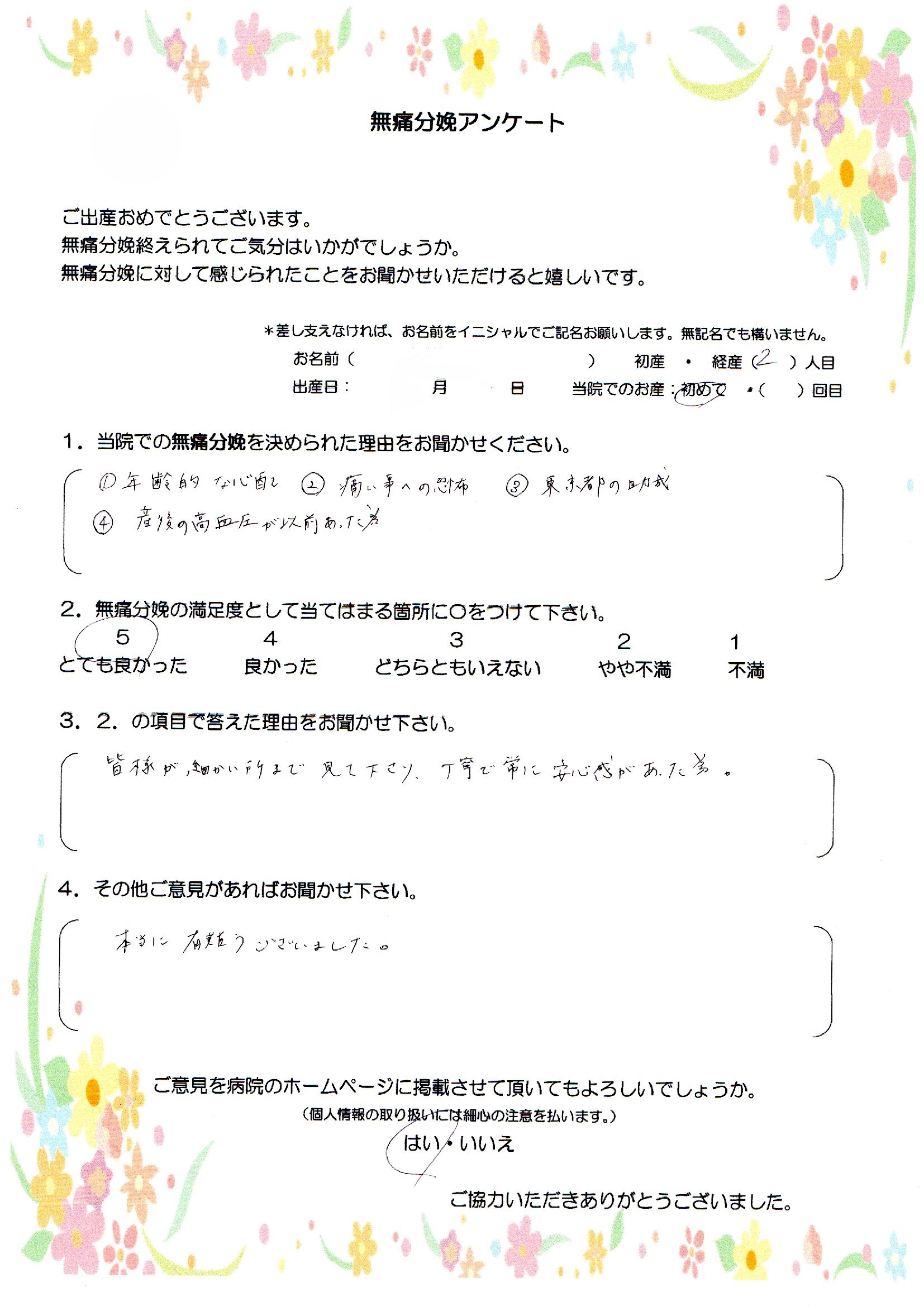 1.当院で無痛分娩を決められた理由をお聞かせください。