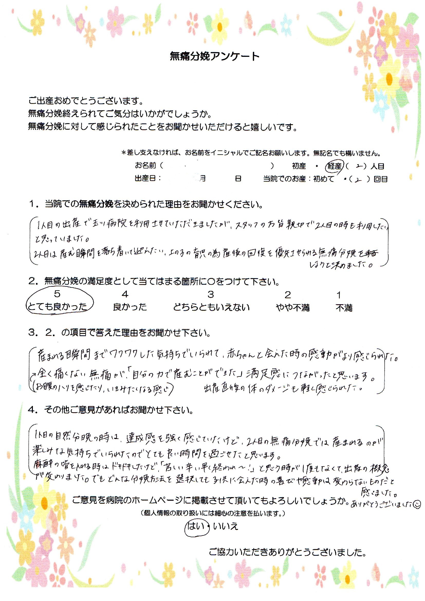 1.当院での無痛分娩を決められた理由をお聞かせください。